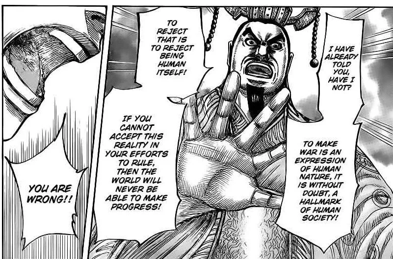 War itself is an expression of Human Nature, and to reject that is to reject being human. Clearly, Ryofui was not pleased with King Sei’s naive thinking that bringing all the states together under one rule will be beneficial, let alone the idea that it will end wars.
